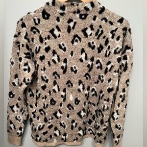 TRIBRAL Tan and Black Cheetah Print Sweater, Size Medium