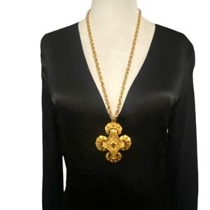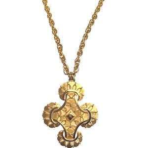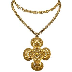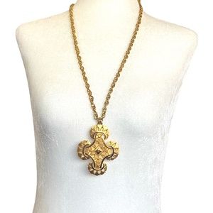 TRIFARI vintage gold toned cruciform medallion chain necklace