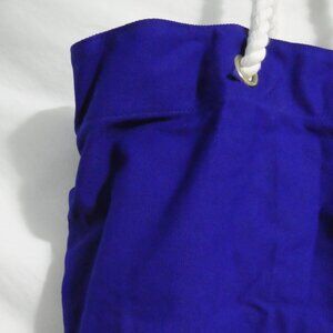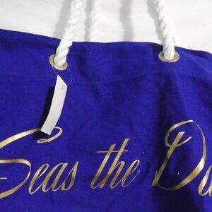 TRINA TURK BEACH TOTE | Blue Corduroy With Gold Seas The Day Print | NWOT