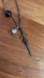 Has 3 charms; one white pearl, one black pearl in silver encasing and one silver skull