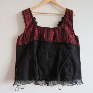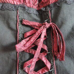 TRIPP NYC Vintage Y2K Steampunk Goth Pirate Lace Corset Top Black Metallic Red