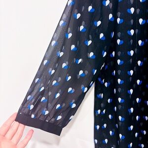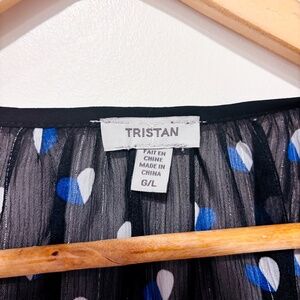TRISTAN Black glitter sheer top with blue hearts