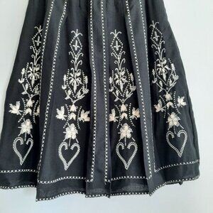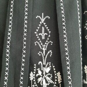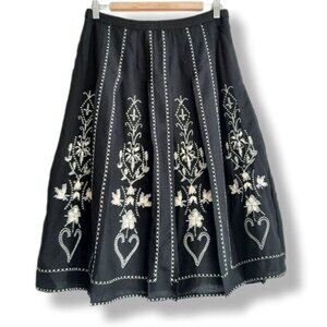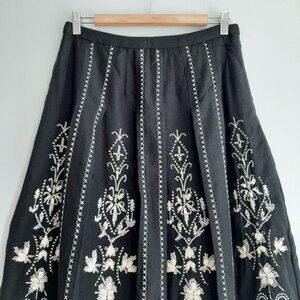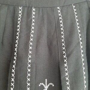 TRISTAN & ISEUT 100% Wool Plisse Midi Skirt Floral Embroidery B&W Sz 6