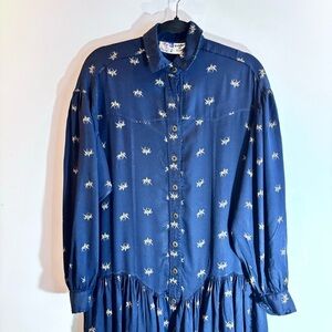 TRISTAN & ISEUT Sz L Vintage Drop Waist Balloon Sleeves Horse Button Down Dress
