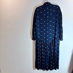 TRISTAN & ISEUT Sz L Vintage Drop Waist Balloon Sleeves Horse Print Button Down Dress. Tiny holes at hem at back as pictured. Flowy and fun.
