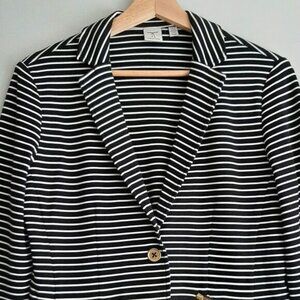 TRISTAN / Stretchy Stripe Comfy Casual Single Button Blazer Jacket B&W Sz M