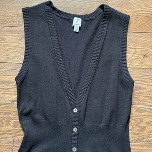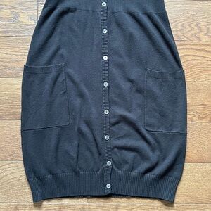 Knit button from long vest with two pockets. Functional buttons so this can be worn both open and closed, very versatile