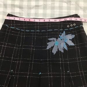 Beautiful black and blue pleated Tristan wool blend skirt. Completely lined inside. Many embellishments detailed, flower, pleated, stitches.
