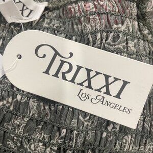 TRIXXI Green Floral Smocked Long Sleeve Midi Dress Square Neck Cottagecore M