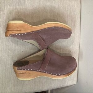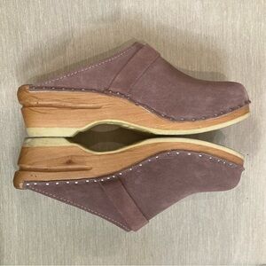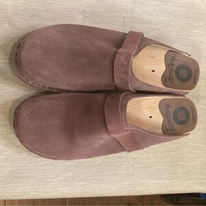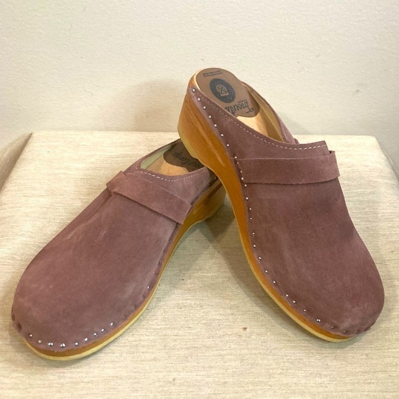 TROENTORP Sz 36 Rembrandt Wooden Sole Suede Clogs In Dusty Rose