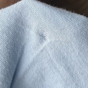 Has a spot where it seems fabric is thinner, no hole though ( see photo)