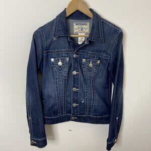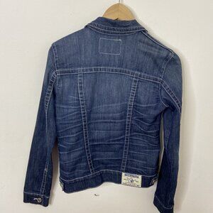 TRUE RELIGION Denim Trucker Jacket Blue Denim Jean Snap Button Small Woman Logo