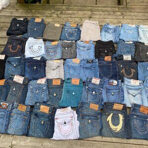 - The 3 jeans you will be receiving will be chosen from the giant lot of 600+ true religion jeans in my warehouse and will probobaly be listed in the photos, however they will remain a mystery