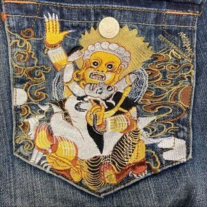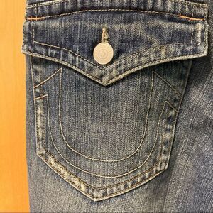 TRUE RELIGION Joey Distressed Wiskering Jeans w/ Embroidered Back Pocket Sz 32