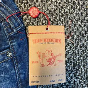 TRUE RELIGION Disco Becky Big T Swarovski Crystal Embellished Distressed Jeans Sz 27 NWT