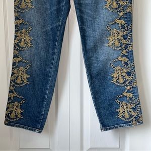 TRUE RELIGION size 30 high waist slim straight leg ornate jeans denim streetwear