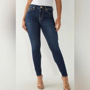 TRUE RELIGION size 30 high rise slim straight leg ornate embroidered denim jeans. Material does have some stretch to it. Excellent used condition. No rips stains or tears. Smoke free home. The approximate measurements laying flat are