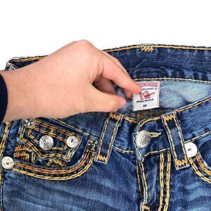 TRUE Religion Jeans Size 28 RICKY SUPER QT Blue Orange Stitch RARE