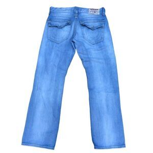 TRUE Religion Jeans Size 34 STRAIGHT White Stitch Blue
