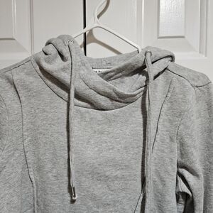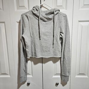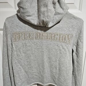 True Religion Studded Bedazzled Gray Cropped Pintuck Pullover Hoodie
