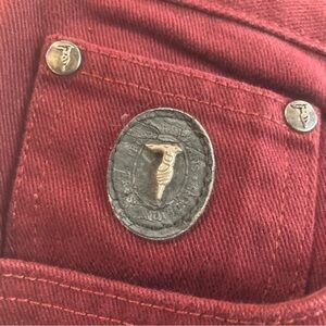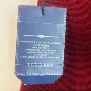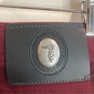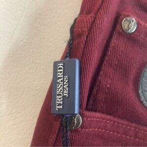 TRUSSARDI JEANS Sz 29 x 31 High Rise Tapered Legs Made in Italy New. Colourful pop for your wardrobe. Zipper needs fixing. Price reflects that. Luxurious fabric with a very high rise.