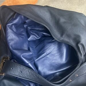 It's just too much bag for me, I WISH I had gotten the size smaller. Gorgeous black100% full-grained calfskin, fully-lined with nappa lambskin in pacific blue, I could curl up and die. π