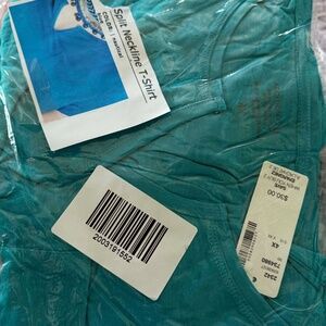 T-SHIRT, HENLEY STYLE, NAUTICAL BLUE, SIZE 4X, SHORT SLEEVES, SPLIT NECK, POCKET, SLIGHT SHIRT TAIL, ADDITION ELLE, IN ORIGINAL BAG, TAGS ON, NEVER WORN