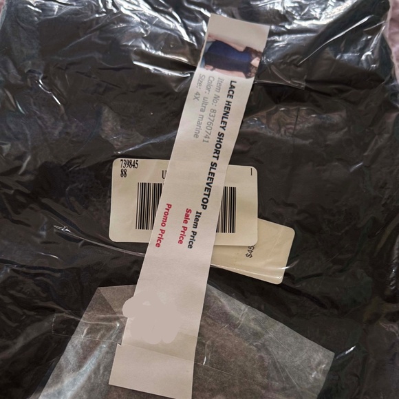 T-SHIRT, LACE YOKE & SLEEVES, ULTRA MARINE, SIZE 4X, ROUNDED V NECK, SHIRT TAIL HEM, ADDITION ELLE, IN ORIGINAL BAG, TAGS ON, NEVER WORN