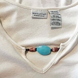 T-SHIRT, REMOVABLE STONE ACCENT, DELICATE IVORY, SIZE 22W/24W, SCOOP WITH VEE NECK, 100% COTTON, WHITE STAG WOMEN'S PLUS, IN BAG, NEVER WORN