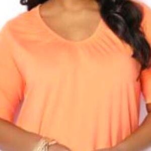 T-SHIRT, RUCHING DETAIL, PAPAYA ORANGE, SIZE 5X, SHORT SLEEVES, RELAXED FIT,