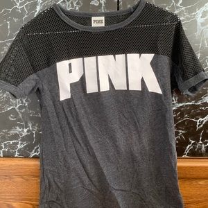 Grey shirt with mesh and the Pink logo.