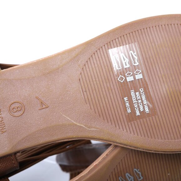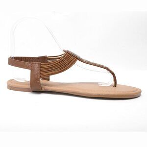 T-Strap Jewel Gemstone Ardene Sandals Brown Bronze Elastic Stretch Summer Flats