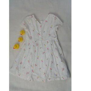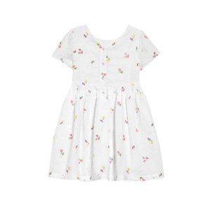 Watch her charm in this soft cotton frock styled with dainty blooms and airy allover eyelets.