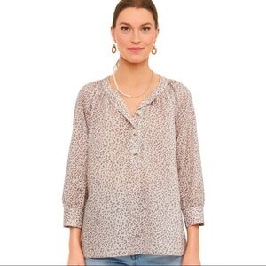 Effortlessly chic, the Brannen takes everything we love about an easy blouse and elevates it with an always in style leopard print, button front placket and three-quarter length sleeves. Tucked in or out, styled with white or blue denim, paired with sneakers or espadrilles, the outfits are endless with this seasonless top! Excellent condition. Size medium.