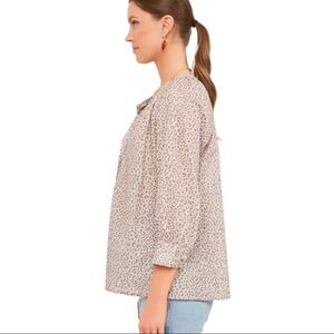 TUCKERNUCK Brannen Light Leopard Blouse Cotton Button Long Sleeve Print Pattern