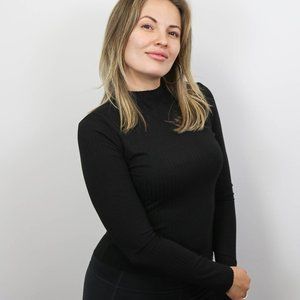 A truly simple yet stylish look! This trendy shirt features a knit fabric ribbed texture with a high neck and long sleeves. Match it with your favourite jeans or dress it up with our Keep Me Busy skirt.