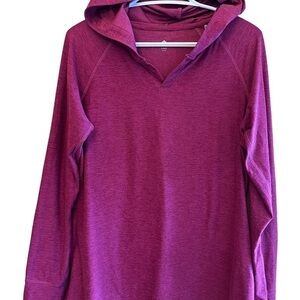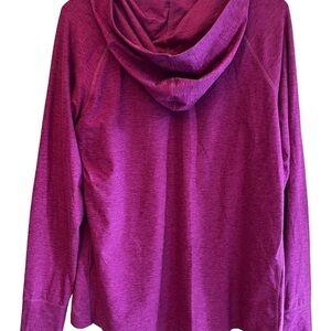 A really great bundle of 3 items in size large: Large size, full length leggings with a slight flare in heather grey/black. A gorgeous purple/fuchsia hoodie pull over, size large and a turquoise tank sleeveless top with a pleated roomy back in size large 26 inches long. See measurements. All in excellent condition.