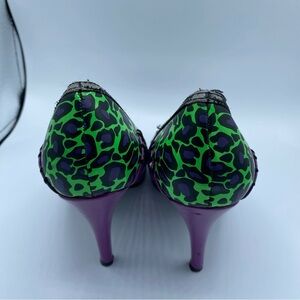 TUK T.U.K. Green & Purple Stitches Animal Print Heels Pin-up Sz 6 Halloween