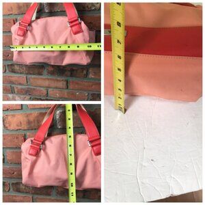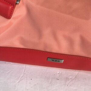TUMI Nylon Satchel Leather Handles Purse Shoulder Bag Zip Pocket Pink Red Small
