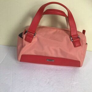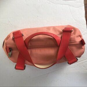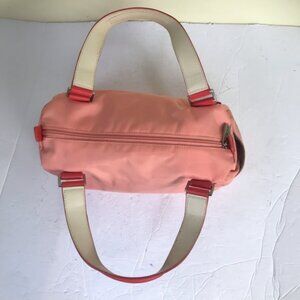 TUMI Travel Satchel Purse Bag Peach Nylon Small Zipper Close Interior Pocket. Small & roomy. Logo on the zipper pull & front.