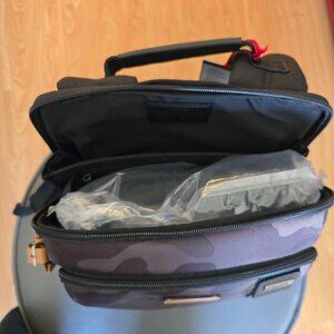 Tumi signature metal plaque on front