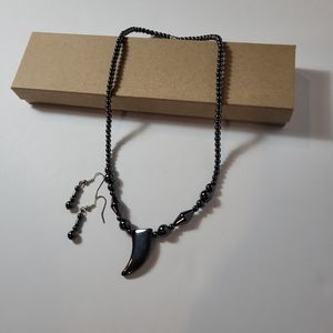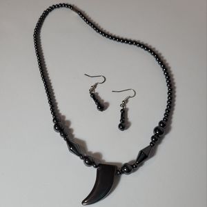 TUNGSTEN Horn / Tooth Pendant Bead Necklace with Earrings Set