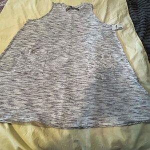 TUNIC, LONG LENGTH, COLOUR: ALMOST WHITE & LIGHT GREY, SIZE 5X, MADE IN CANADA!, SOFT FABRIC, RELAXED FIT, FRONT POCKETS, RIBBED MOCK NECK, PENNINGTONS, IN ORIGINAL BAG, TAGS ON, NEVER WORN