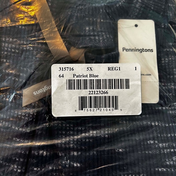 TUNIC, LONG LENGTH, PATRIOT BLUE (Medium Blue) & WHITE, SIZE 5X, MADE IN CANADA!, SOFT FABRIC, RELAXED FIT, FRONT POCKETS, RIBBED MOCK NECK, PENNINGTONS, IN ORIGINAL BAG, TAGS ON, NEVER WORN