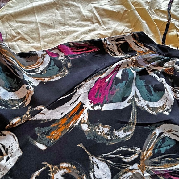 TUNIC, LONG SLEEVES, COLOUR: PEACOAT COMBO (Black, White, Pink, Brown), SIZE 4X, SILKY FABRIC, RELAXED FIT, FRONT POCKETS, NECK TIES, MELISSA McCARTHY SEVEN for ADDITION ELLE, IN ORIGINAL BAG, TAGS ON, NEVER WORN