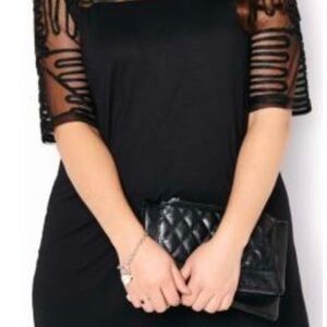 TUNIC, RIBBON & MESH DETAIL, BLACK, SIZE 4X, RAYON/SPANDEX, ¾ SLEEVES, PULL ON, PENNINGTONS, TAG ON, NEVER WORN