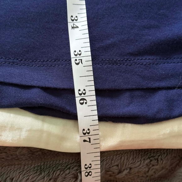 DETAILS: WHT/LT BLUE pattern to hips, NAVY below