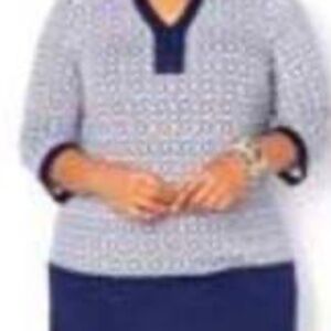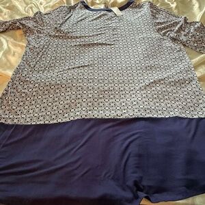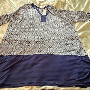 TUNIC, ¾ SLEEVE, TOP TILE BLUE & NAVY BOTTOM, SIZE 4X, V NECK, RAYON/SPANDEX,