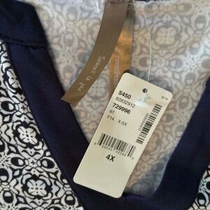 TUNIC, ¾ SLEEVE, TOP TILE BLUE & NAVY BOTTOM, SIZE 4X, V NECK, RAYON/SPANDEX, PENNINGTONS, IN ORIGINAL BAG, TAG ON, NEVER WORN