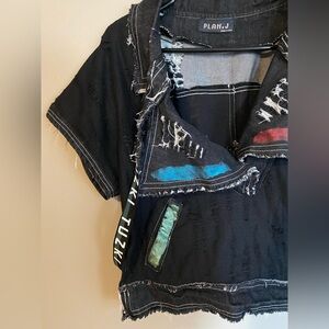 TUZKI Raw Edge Distressed Denim Top Jacket Vest